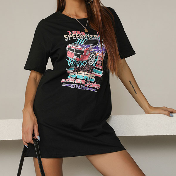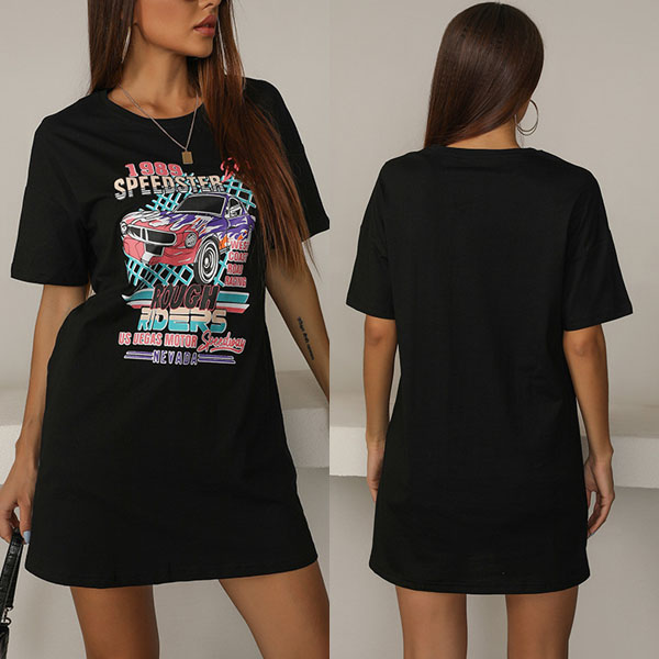 On your lazy days when you don't wanna take too much time to do your wardrobe matching,then this t-shirt dress can be your perfect solution. It is crafted from soft and breathable fabric,with short sleeve,round neck and car pattern,this t-shirt dress is a good way to keep the comfy and style.