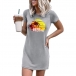 Casual Style Short Sleeve Round Neck Coconut Tree Pattern T-shirt Dress