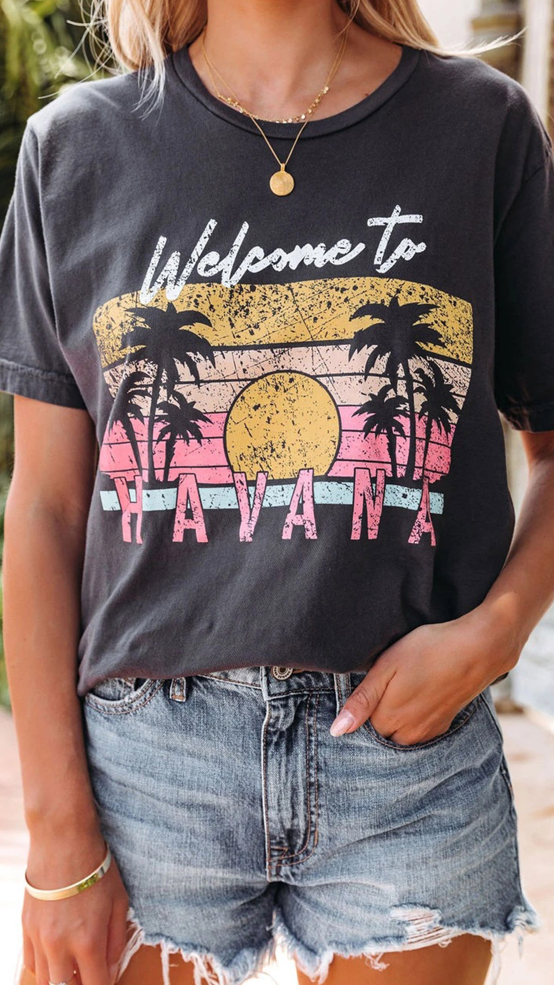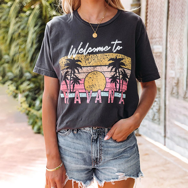 Crafted from soft and breathable fabric,with short sleeve,round neck and a loose silhouette,this t-shirt is sure to give you a comfortable day. Moreover,the coconut tree pattern design will make this piece look more attractive. No matter what kind of bottoms you pair with,it can hardly go wrong!