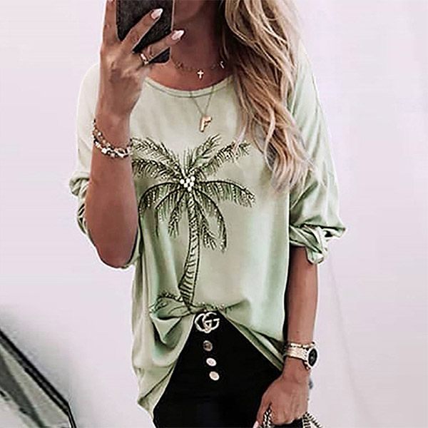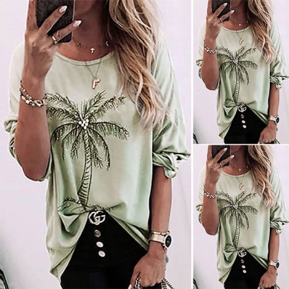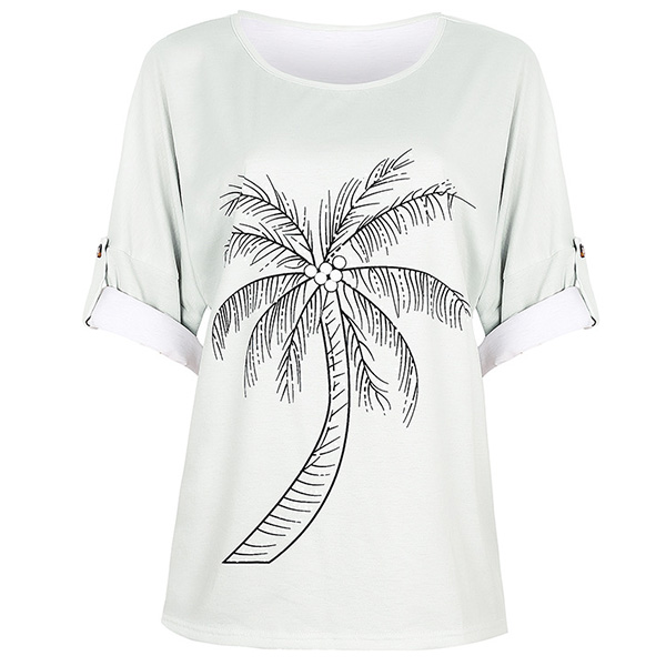 Combines of simple,casual,cozy yet stylish style,this t-shirt is yearning for a place in your wardrobe. Crafted from soft and breathable fabric,with short sleeve and round neck design,this t-shirt can promise you a comfortable day,while the coconut tree printed pattern design will make this piece look more attractive. Like it? Then add it to your wardrobe.