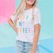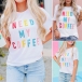 Combines of simple,cozy and stylish vibes,this t-shirt is just the thing you need on your casual days. The colorful letters printed details make this piece look so stylish and attractive. Finished with short sleeve,round neck and a loose silhouette,this piece can keep the comfy as well as offer you different matching styles.