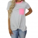 Casual Style Short Sleeve Round Neck ContrasT Color Stripe T-shirt