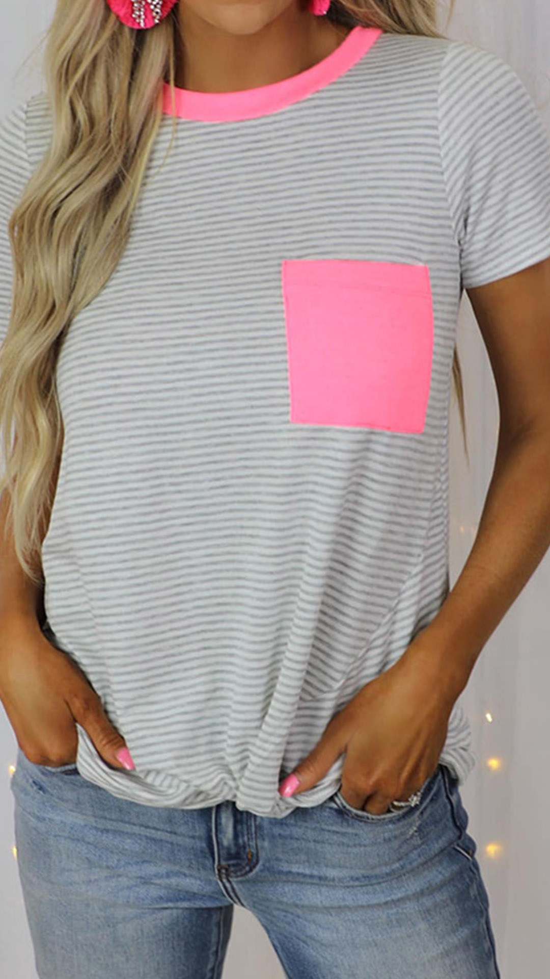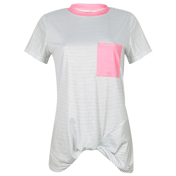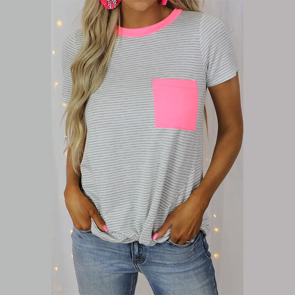 Hey,girls,you can update your casual wardrobe ensemble with this t-shirt. The contrast color and stripe element break the simple and dull design style. Crafted from soft and breathable fabric,with short sleeve and round neck design,this t-shirt is just the thing you need on your casual days.