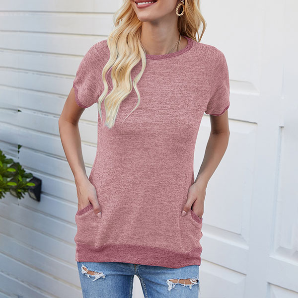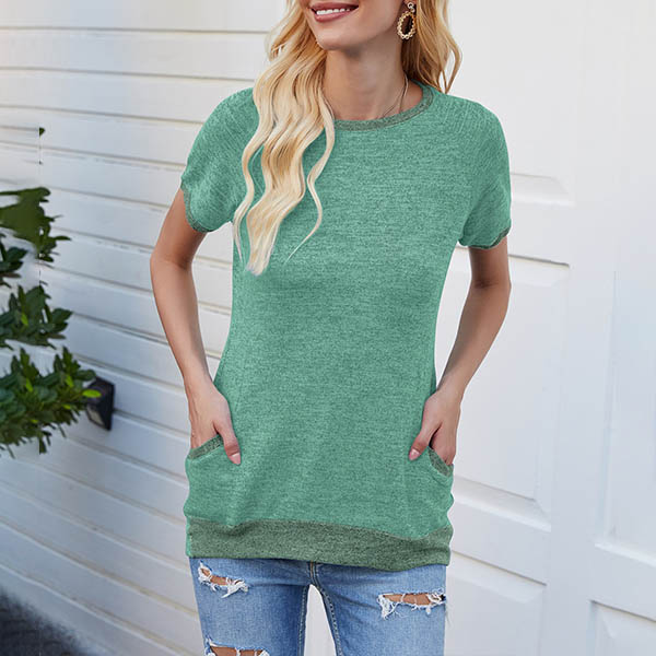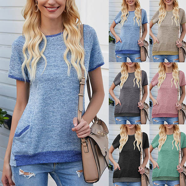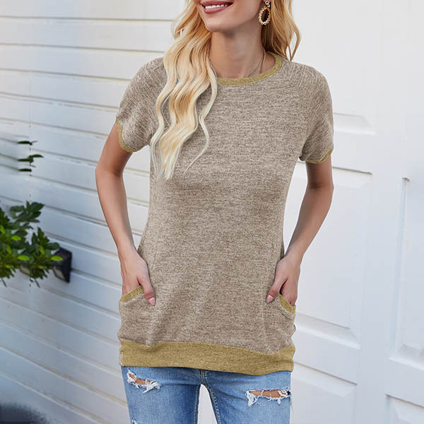 Casual Style Short Sleeve Round Neck Contrast Color T-shirt