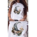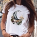Thanks to the super soft and breathable fabric,this t-shirt can give you an utmost comfort. Finished with short sleeve,round neck and crescent pattern,this piece also can lend you some chic and romantic vibes. All-match design allows to be matched with different style bottoms.