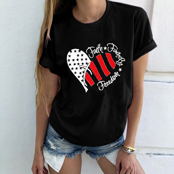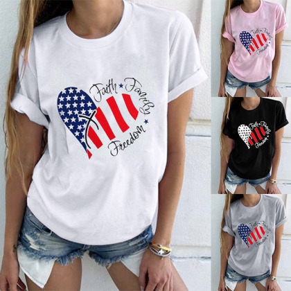 Casual Style Short Sleeve Round Neck Heart Printed T-shirt
