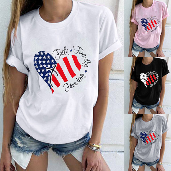 This t-shirt is crafted from soft and breathable fabric,with short sleeve and round neck design,which can offer you a comfortable day. Moreover,the heart printed pattern design can add some extra charm. All-match design allows to be matched with different style bottoms. So why not add it to your wardrobe?