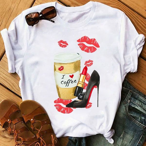 For every girl,a cozy,simple yet stylish t-shirt is a wardrobe essential. So how about this piece? The heels pattern design will make this piece full of charm. Crafted from soft and breathable fabric,with short sleeve and round neck design,this piece also can be matched with different bottoms. So why not buy one?