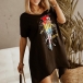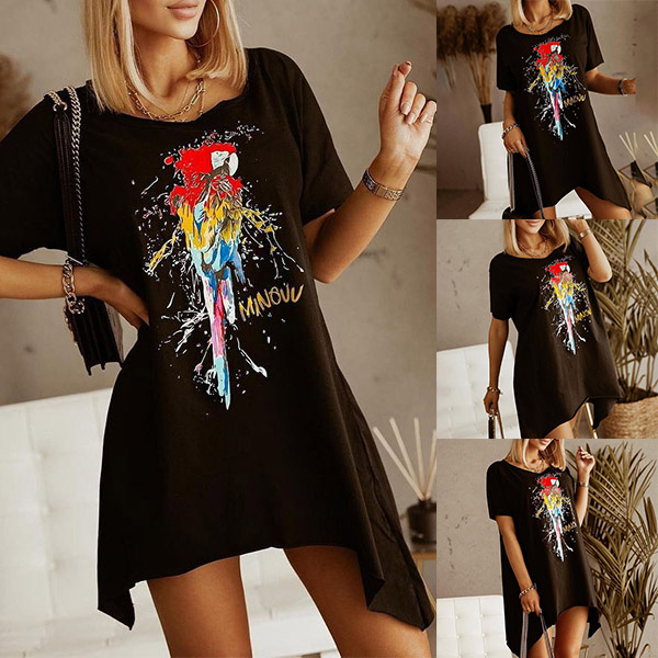 Casual Style Short Sleeve Round Neck Irregular Hem Printed Dress