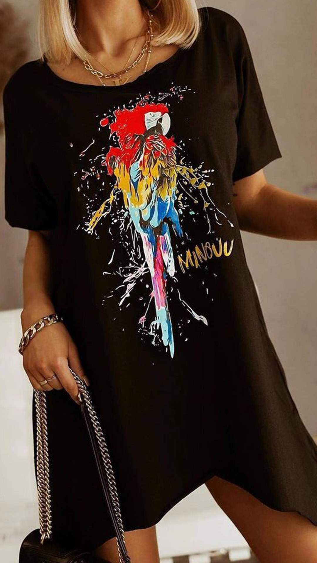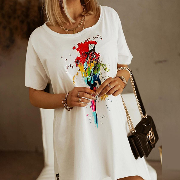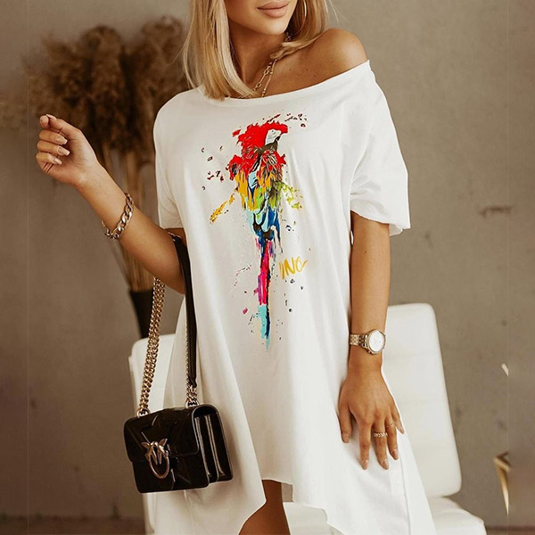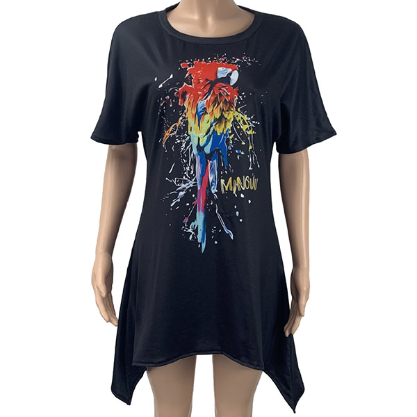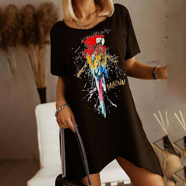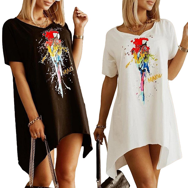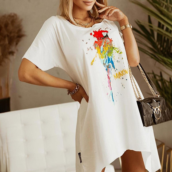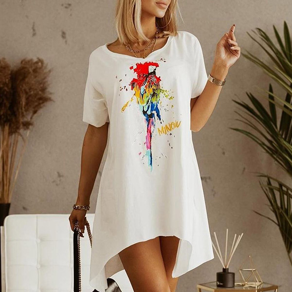 On your casual days or weekends,this cozy yet stylish dress can easily arouse your attention. Its chic printed pattern and irregular hem design make this piece look so distinctive and attractive. Crafted from soft and breathable fabric,with short sleeve,round neck design,this piece also can ensure you a comfortable day.