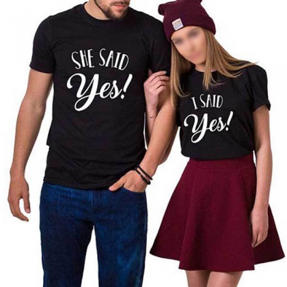 Casual Style Short Sleeve Round Neck "I/SHE SAID YES" Letters Printed Couple T-shirt
