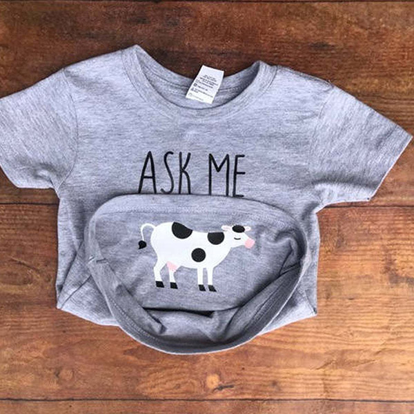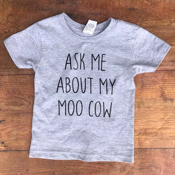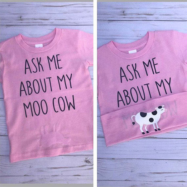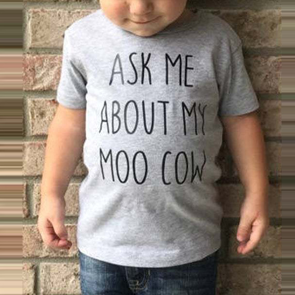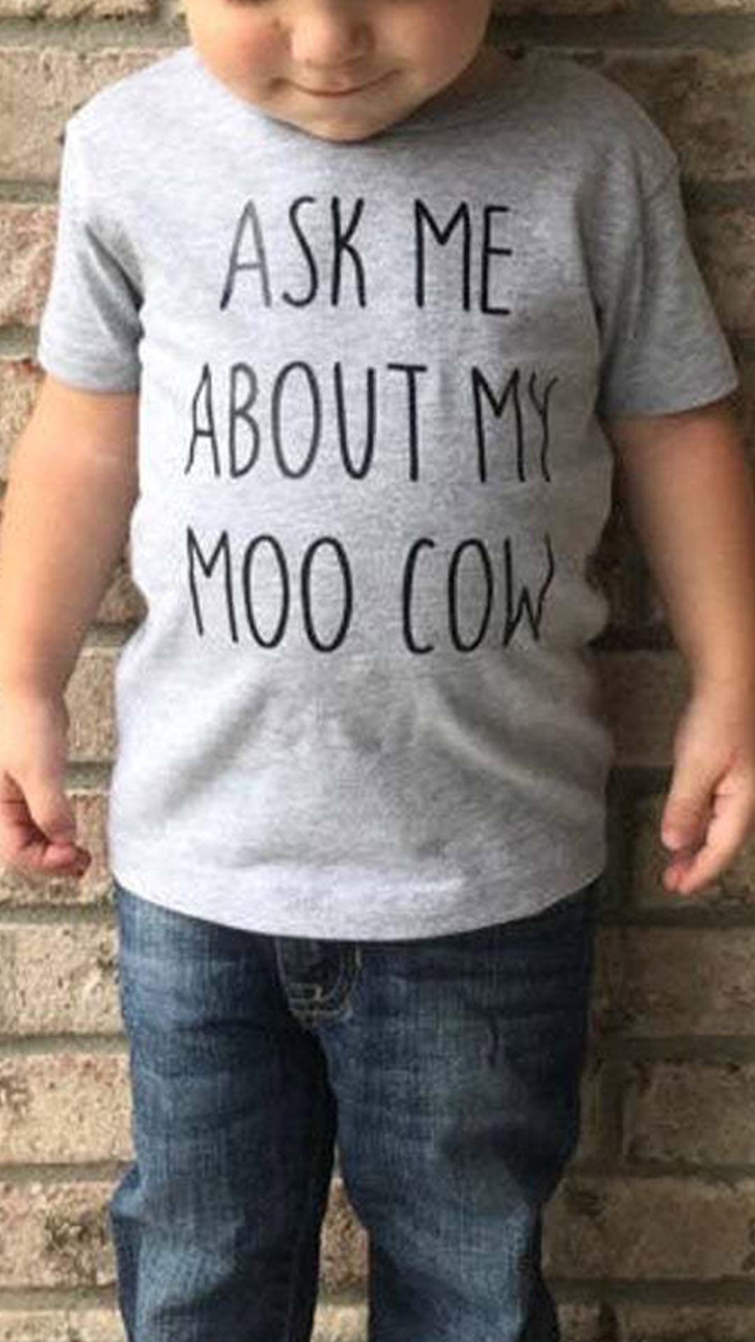 Crafted from super and breathable fabric,with short sleeve and round neck design,this t-shirt can ensure an utmost comfort. Moreover,the letters printed details like "ASK ME ABOUT MY MOO COW" will add some playful vibes.