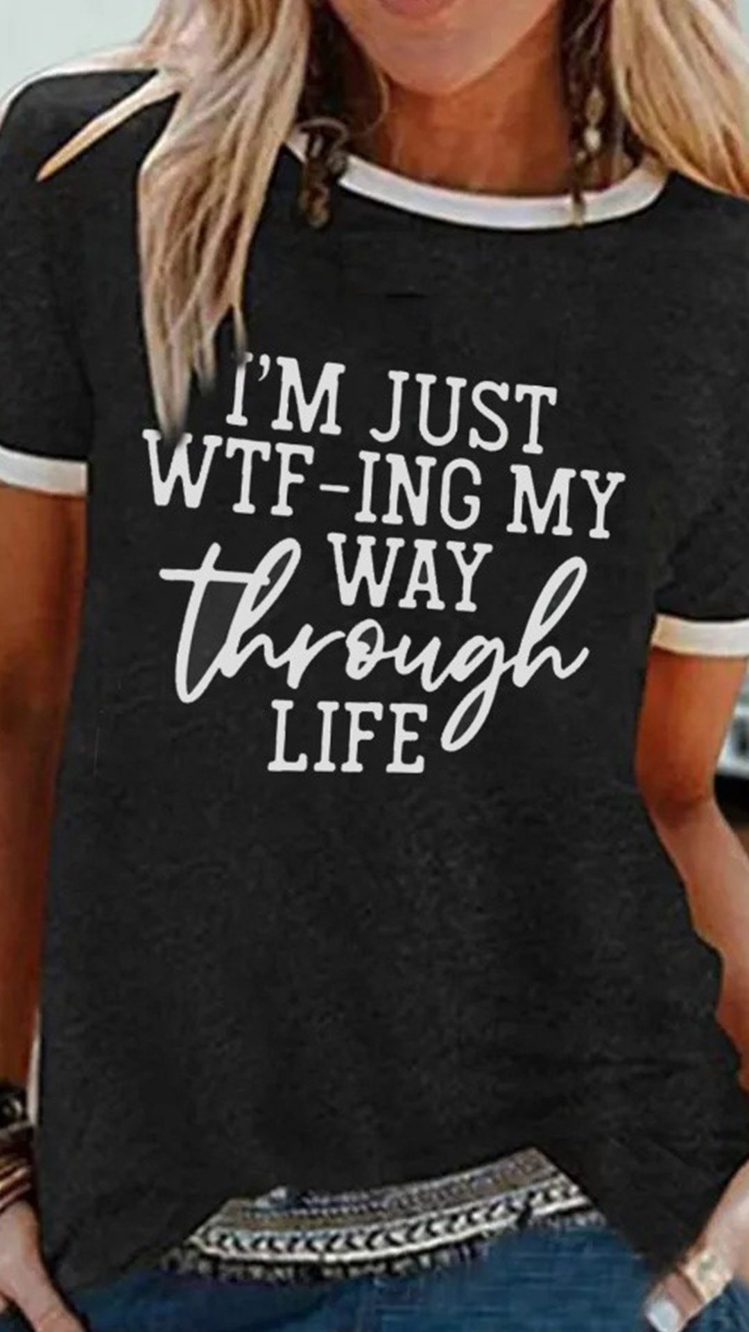 Casual Style Short Sleeve Round Neck Letters Printed Contrast Color T-shirt