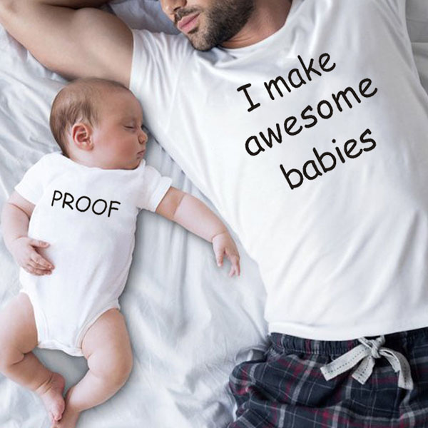 For the fathers and sons,this father and son t-shirt is a good choice for them to develop their close relationship. The letters printed details like "I make awesome babies" will lend you a dash of playful vibes,while its soft and breathable cotton can ensure a comfortable day. You can just enjoy the parent-child time with this t-shirt!