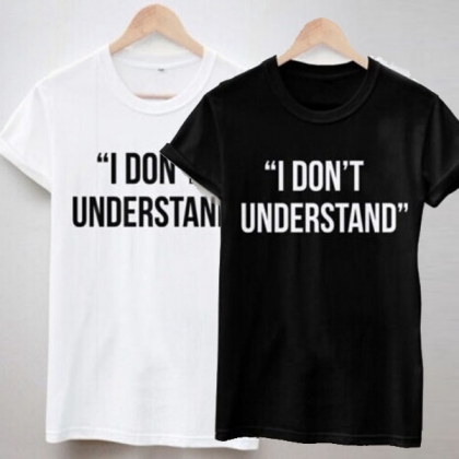 As for a simple,casual,relaxed yet stylish daily style,you can just have a try this t-shirt. The letters printed like "I DON'T UNDERSTAND" makes it look more stylish and attractive. Crafted from soft and breathable fabric,with short sleeve and round neck design,this t-shirt is worth to have a place in your wardrobe.