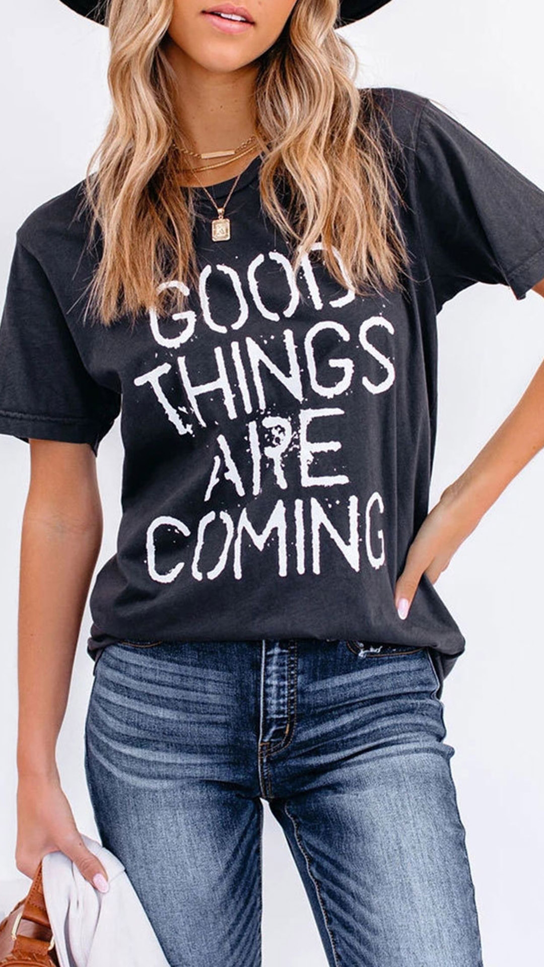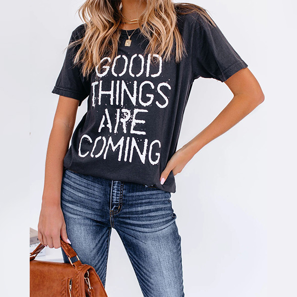 A perfect combination of simple,casual,cozy and stylish vibes,this t-shirt is worth to have a place in your wardrobe. It is finished with short sleeve,round neck,a loose silhouette and letters printed details,this piece can keep the comfy as well as offer you different matching styles. So why not add it to your wardrobe ensemble?