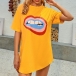 Casual Style Short Sleeve Round Neck Lip Pattern Loose T-shirt