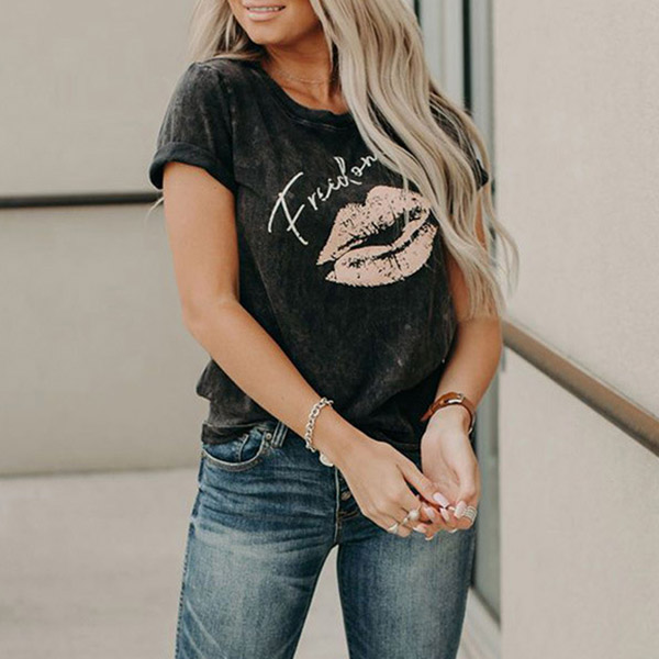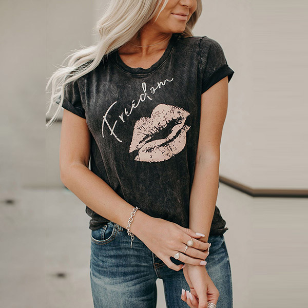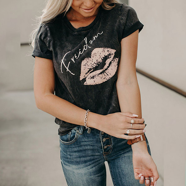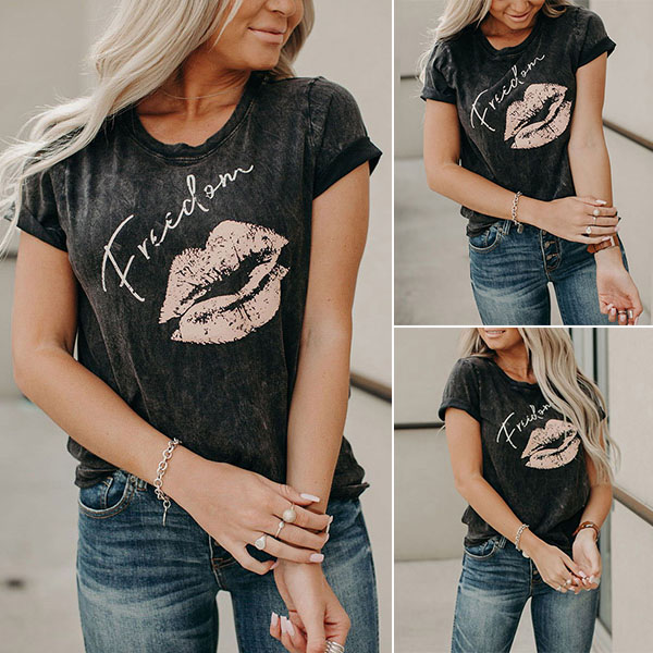 Crafted from soft and breathable fabric,with short sleeve and round neck design,this t-shirt that exudes simple,cozy and stylish vibes is perfect fit for your casual days. And the lip pattern design will lend you a more playful style. All-match design allows to be matched with different style bottoms.