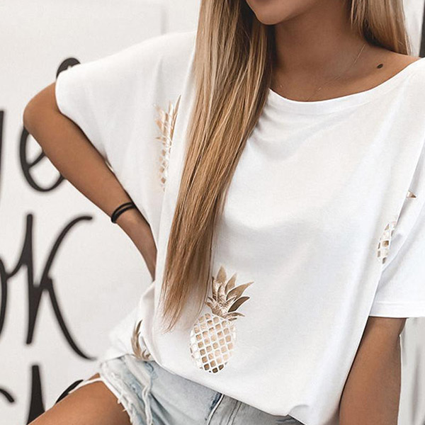 This simple,casual yet stylish t-shirt is just the thing you need on your casual days. Crafted from soft and breathable fabric,with short sleeve,round neck and a loose silhouette,this t-shirt can offer you a comfortable day,while the pineapple printed pattern design will lend you a dash of chic and playful vibes. Perfect fit for matching with different style bottoms.