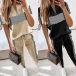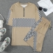 Casual Style Short Sleeve Round Neck Plaid Spliced Top + Pants Two-piece Set