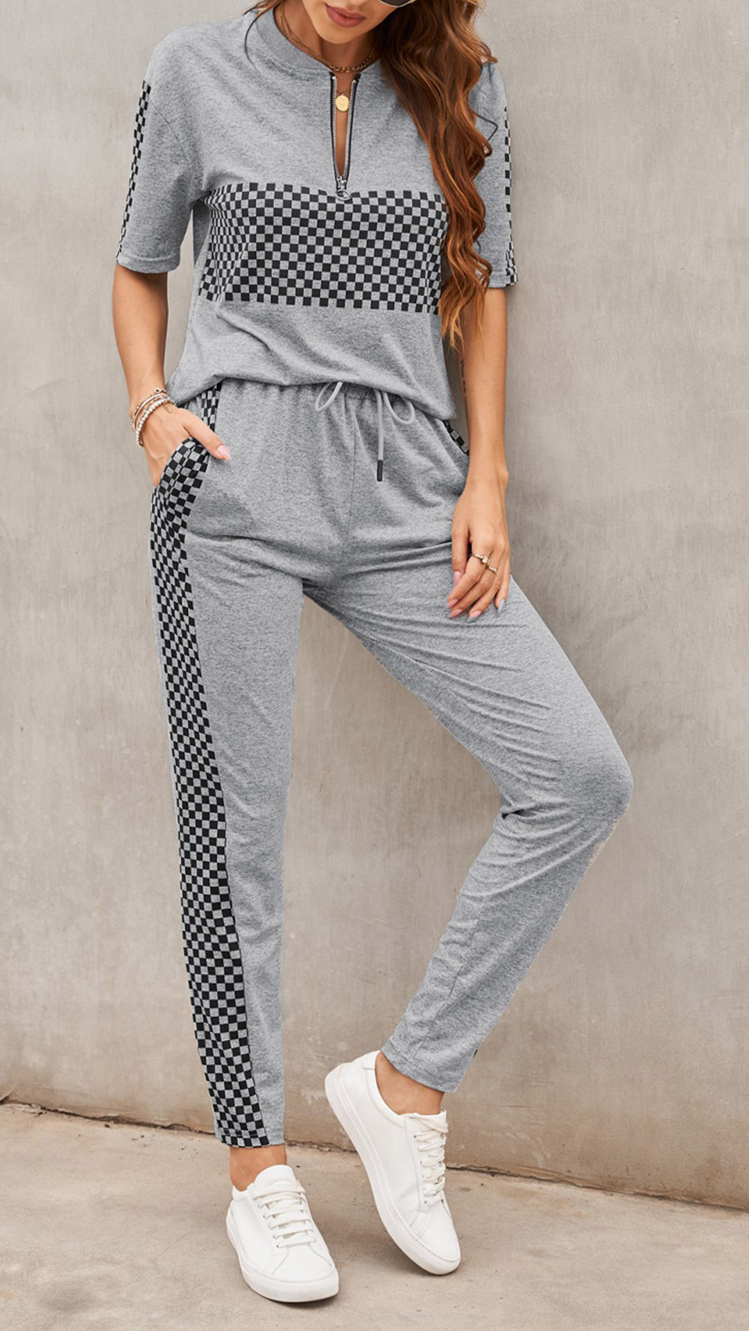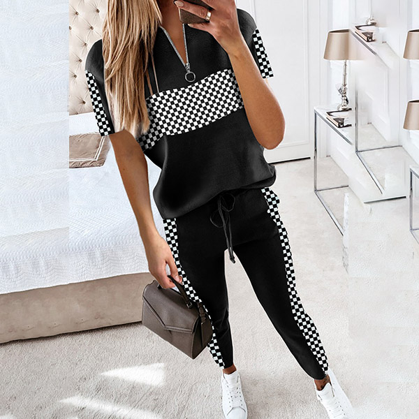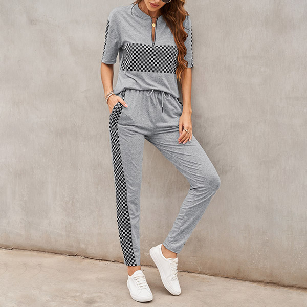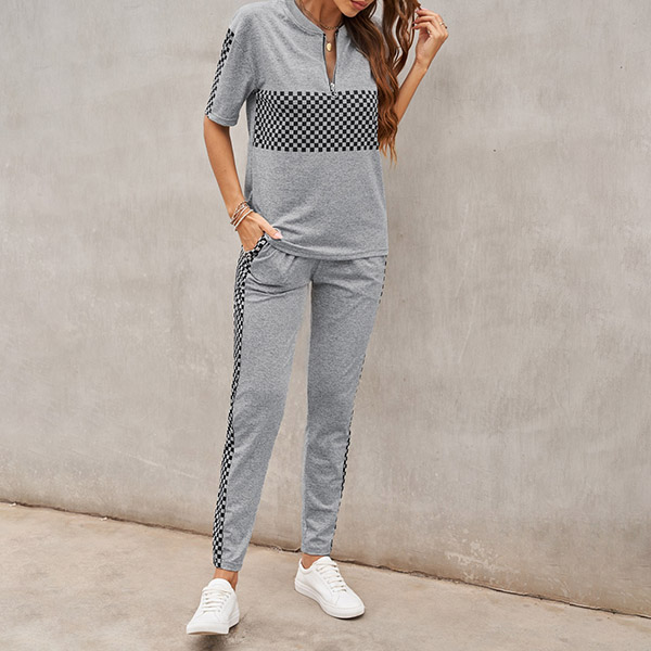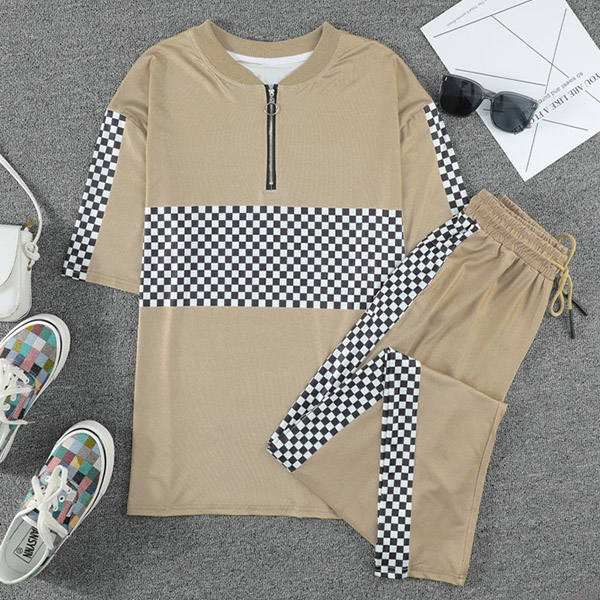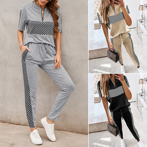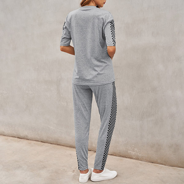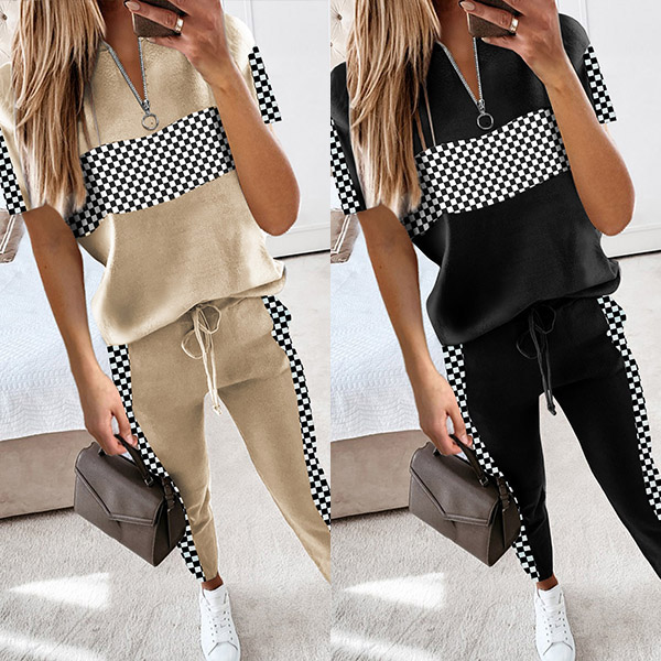 As for your casual weekends and sports time,this relaxed yet stylish two-piece set can be your perfect partner. The plaid spliced details break the simple and dull design style. Including a short sleeve round neck top and a pants,this two-piece set can ensure you a comfortable day with its soft and breathable fabric. Add them to your casual wardrobe ensemble!