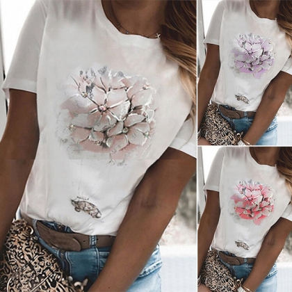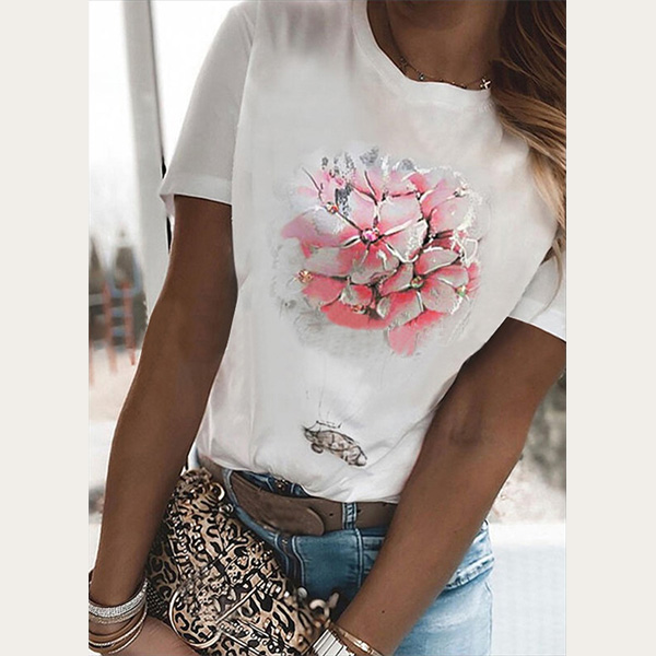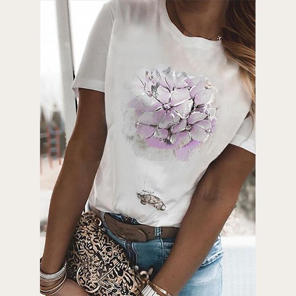 This t-shirt is crafted form soft and breathable fabric,with short sleeve and round neck design,this t-shirt that bears a simple and classic design can give you a long-lasting comfort. And the printed pattern design will add some extra charm. No matter what kind of bottoms you pair with,it can hardly go wrong!