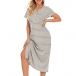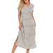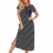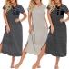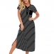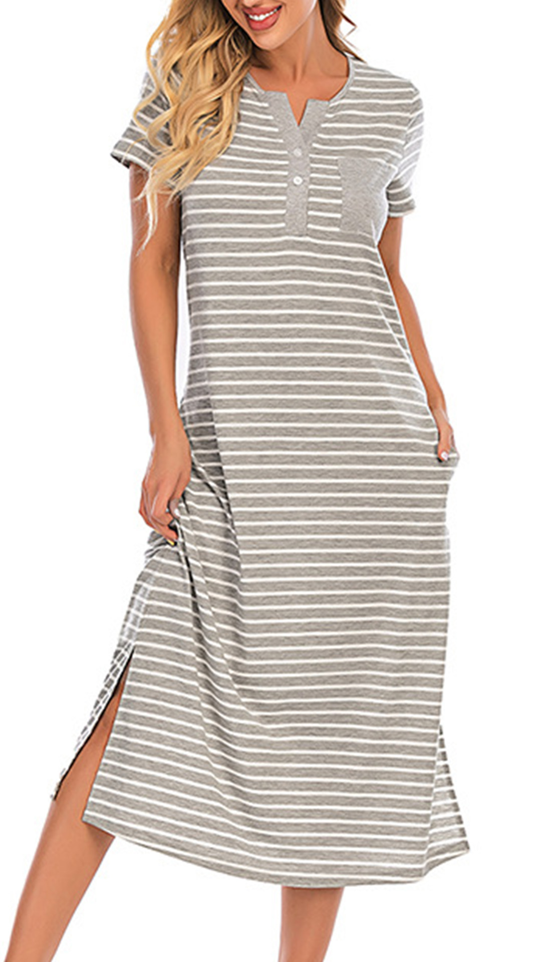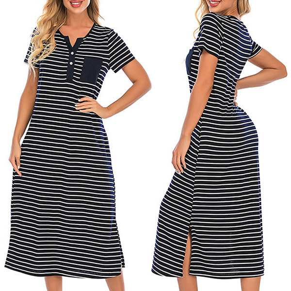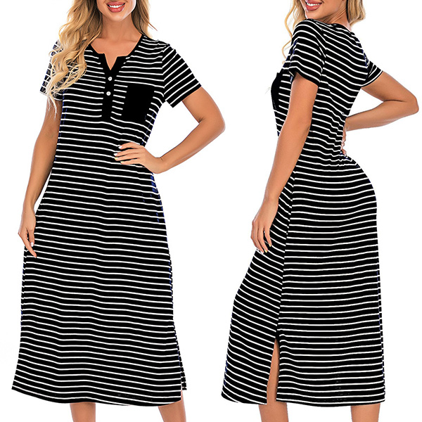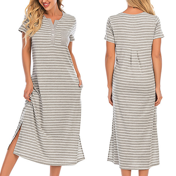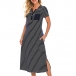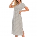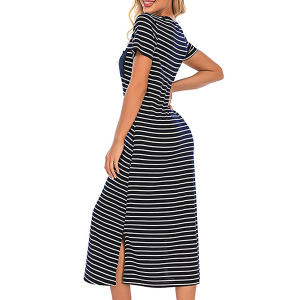 Casual Style Short Sleeve Round Neck Slit Hem Loose Stripe Dress
