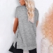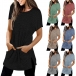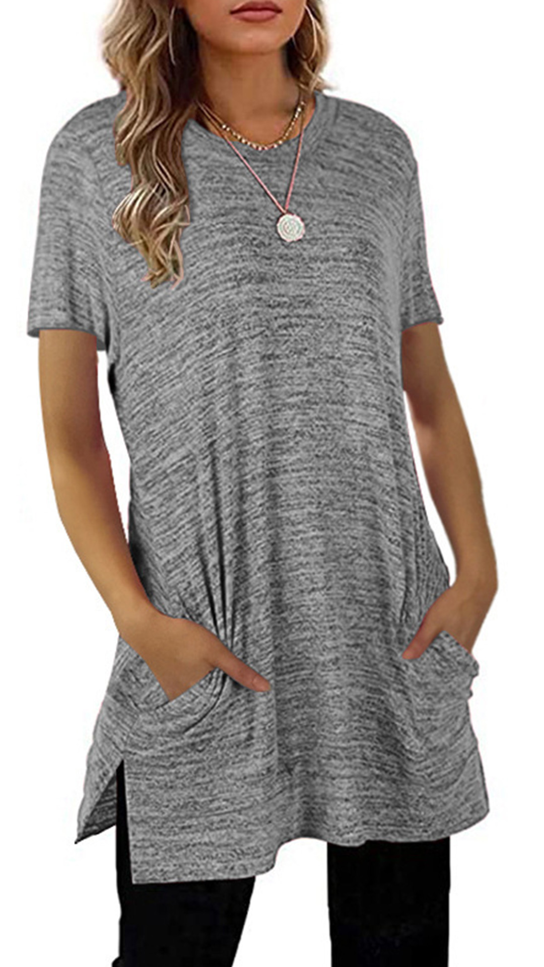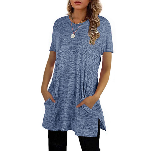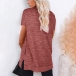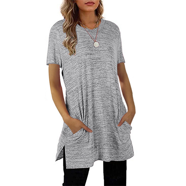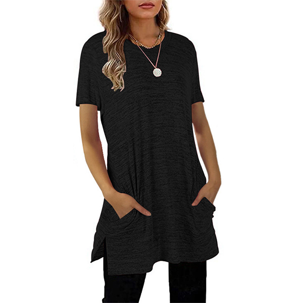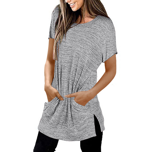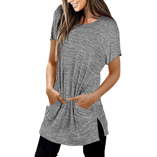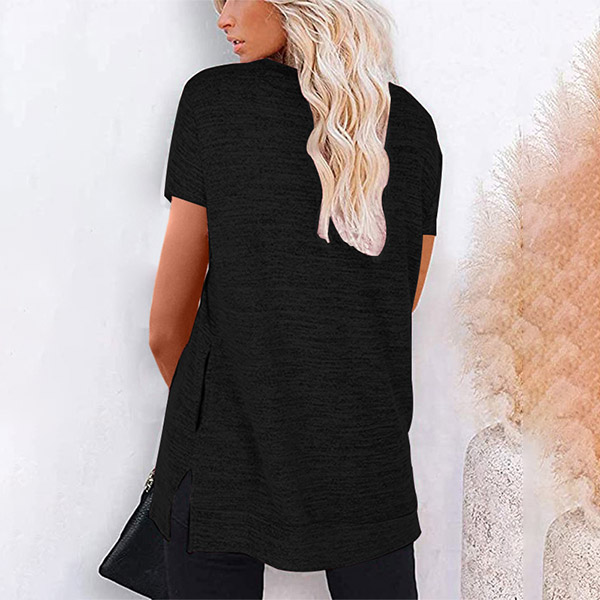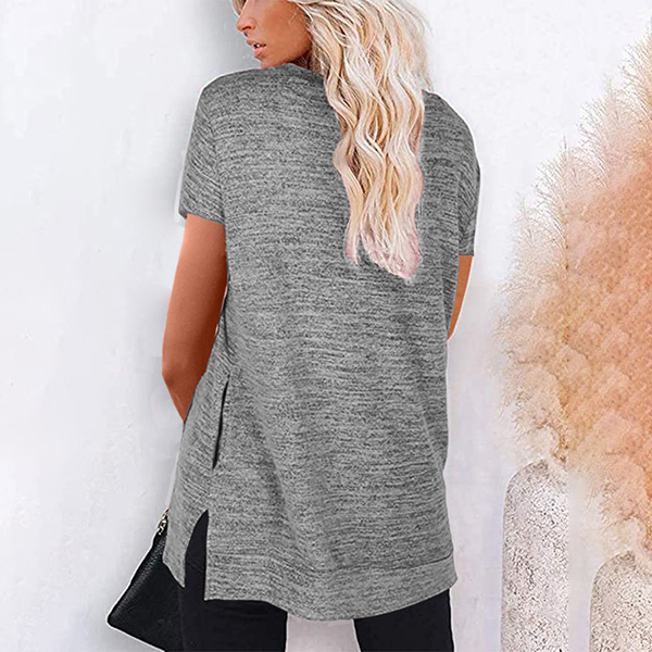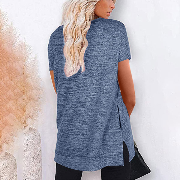 Casual Style Short Sleeve Round Neck Slit Hem Loose T-shirt