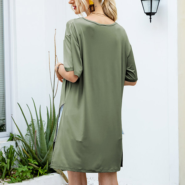 Casual Style Short Sleeve Round Neck Slit Hem Solid Color T-shirt