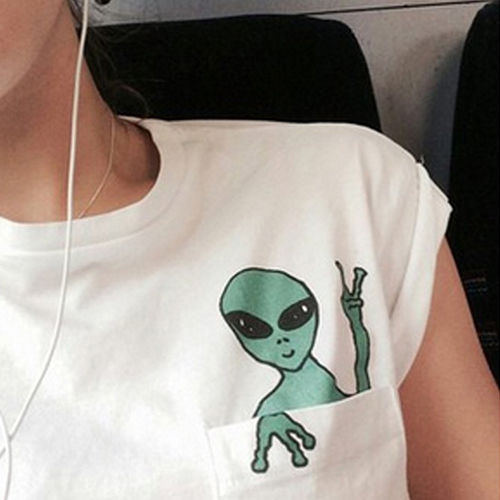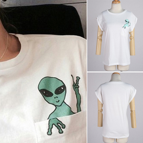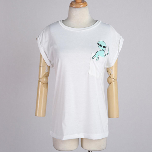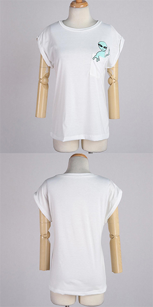round neck and a chest patch pocket,simple yet stylish. And the alien pattern makes it look not so monotonous Perfect for pairing with your any bottoms.