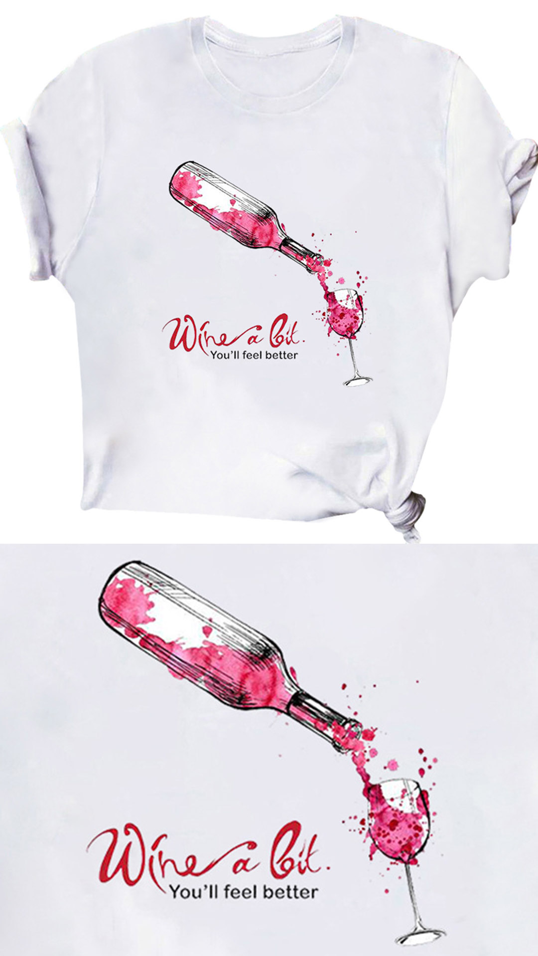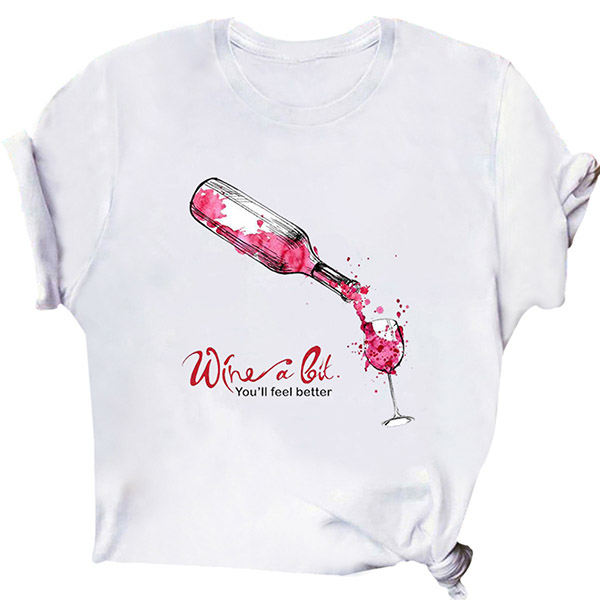 Crafted from soft and breathable fabric,with short sleeve,round neck and a loose silhouette,this t-shirt is sure to give you a comfortable day. Moreover,the wine bottle pattern design will make this piece look more stylish and attractive. All-match design allows to be matched with different style bottoms.