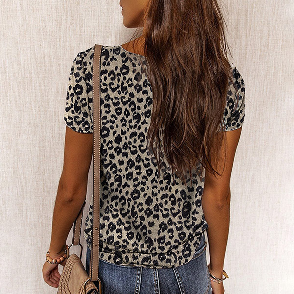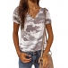 Casual Style Short Sleeve V-neck Leopard/Camouflage Printed T-shirt