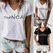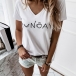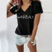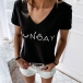 Casual Style Short Sleeve V-neck Letters Printed T-shirt
