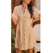 Casual Style Short Sleeve V-neck Single-breasted Loose Dress