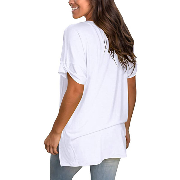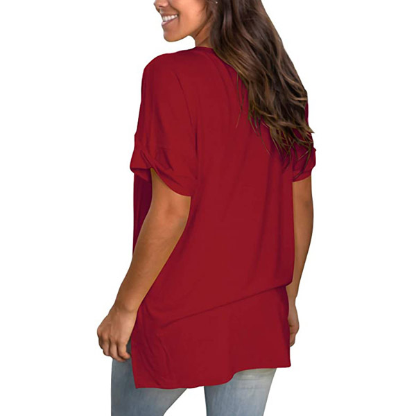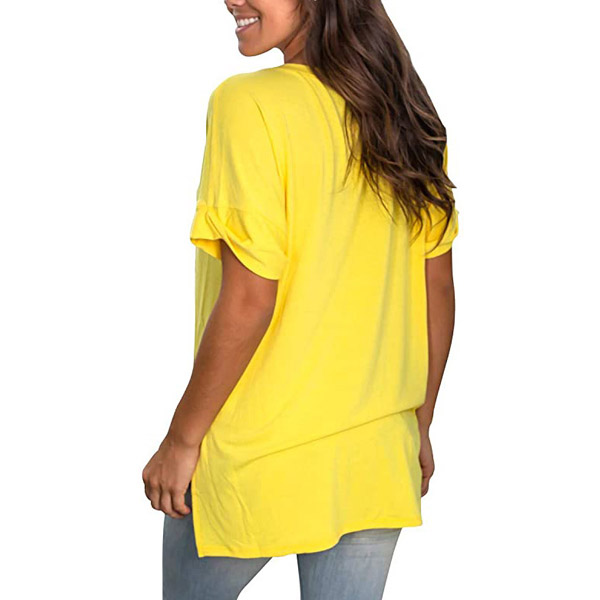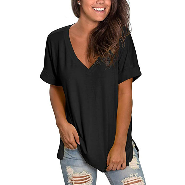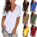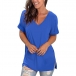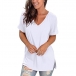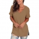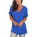 Casual Style Short Sleeve V-neck Solid Color Loose T-shirt