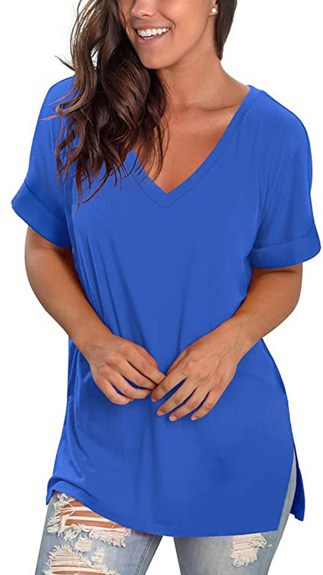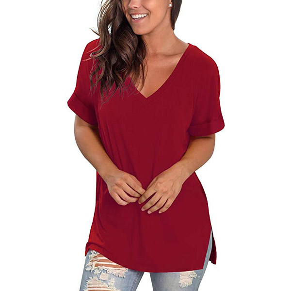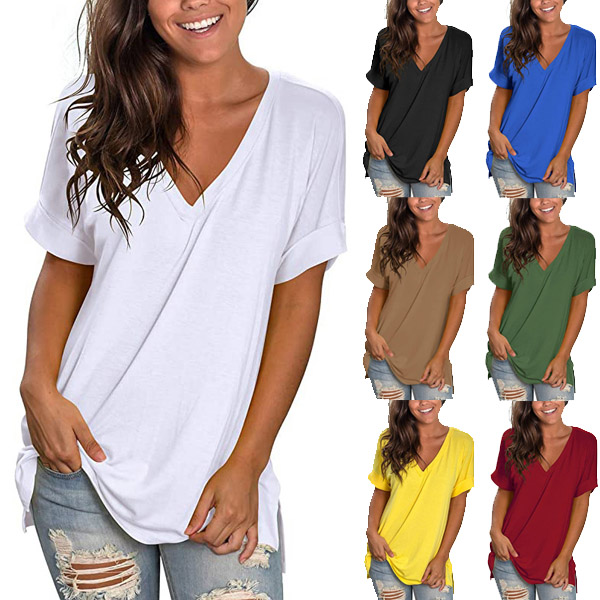 Your lazy days and casual weekends call for such a simple,cozy yet stylish t-shirt. Comes with a solid color,finished with short sleeve,v-neck and a loose silhouette,this t-shirt not only can give you a comfortable day,but also can offer you different fashion styles by teaming with different style bottoms.