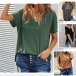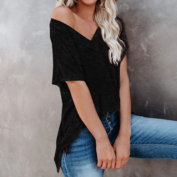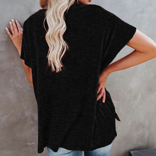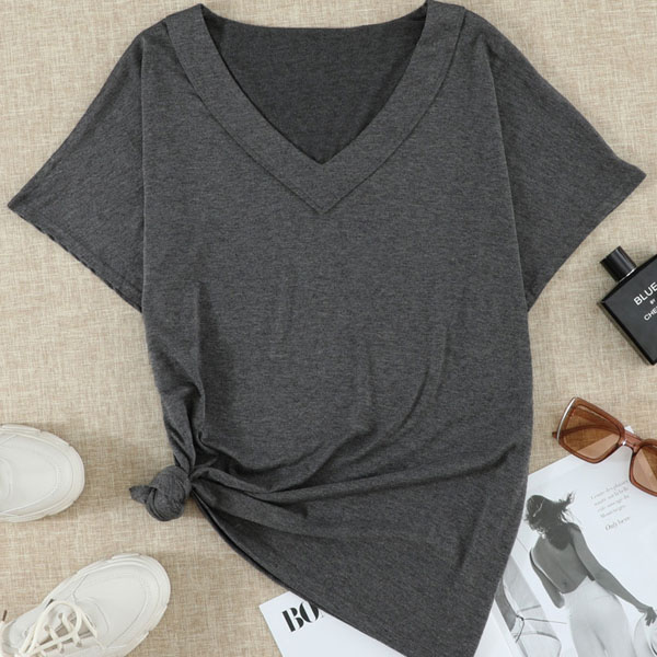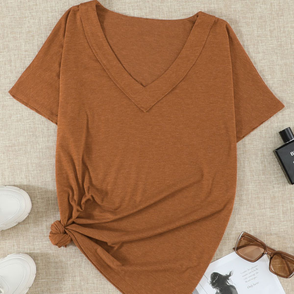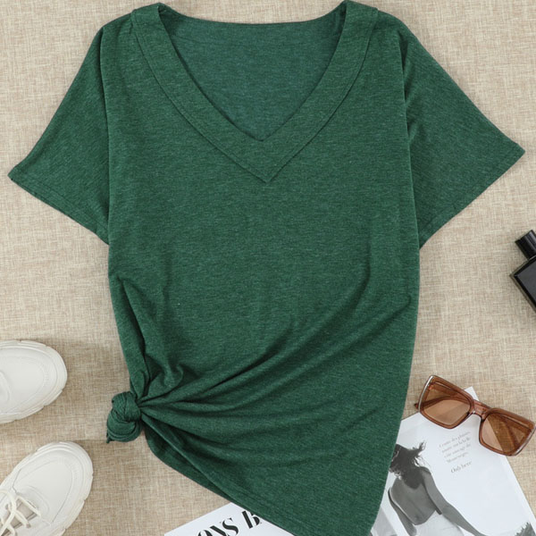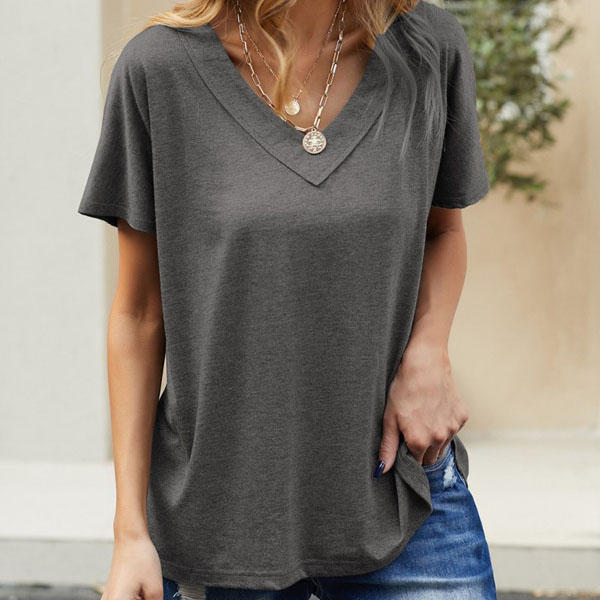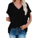 Casual Style Short Sleeve V-neck Solid Color Loose T-shirt