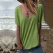 Casual Style Short Sleeve V-neck Solid Color T-shirt