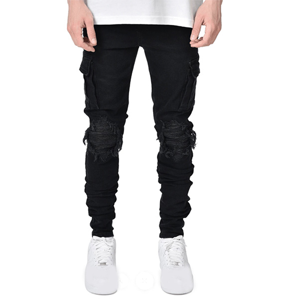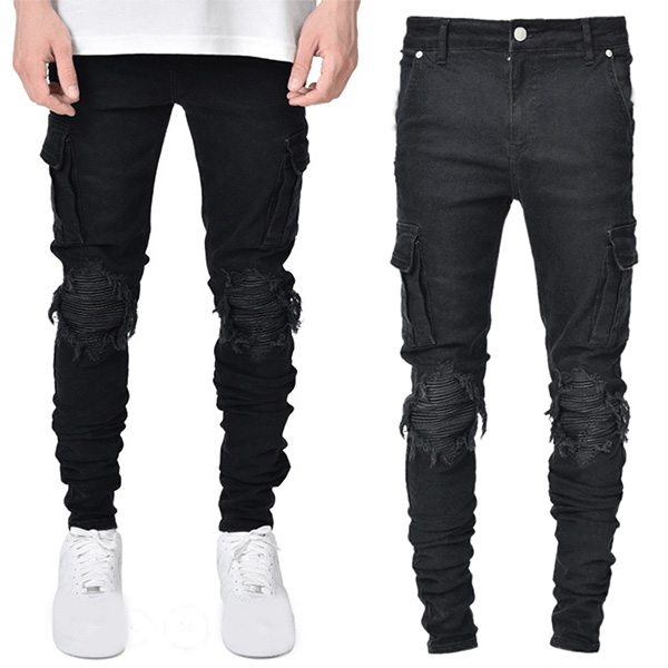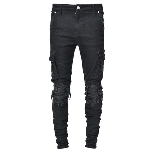 Casual Style Side-pocket Middle-waist Ripped Man's Jeans