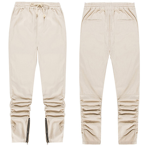 piece features solid color and drawstring waist, completed with crinkle and side zipper design,