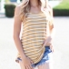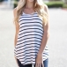 As we all know,stripe element will never be out of fashion. So why not catch up with this trend? This top is designed with stripe element,finished with sleeveless,round neck and arc hem,which can offer you a comfortable day. A good choice for your casual days.