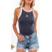 Casual Style Sleeveless Round Neck Contrast Color Slim Fit Tank Top