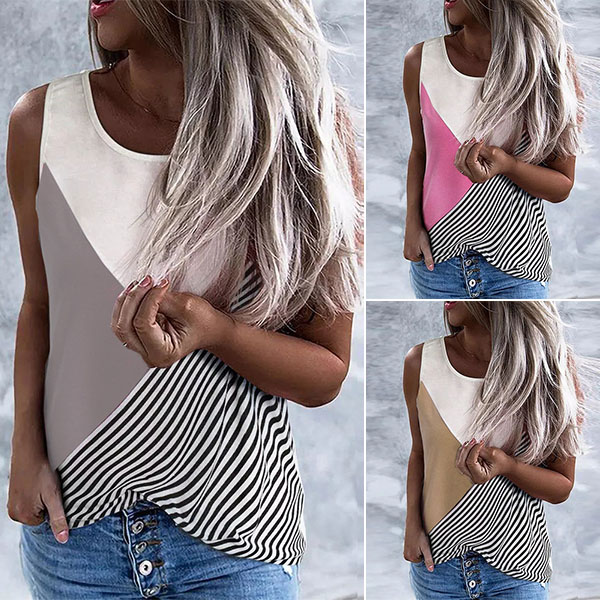 A perfect combination of simple,casual,cozy and stylish vibes,this top is worth to have a place in your summer wardrobe. The contrast color element and stripe design break the simple and dull design style. Finished with sleeveless,round neck and soft fabric,this piece also can offer you different fashion styles by teaming with different style bottoms.
