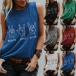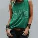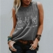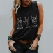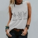 Casual Style Sleeveless Round Neck Finger Printed T-shirt