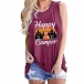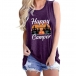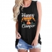 Casual Style Sleeveless Round Neck Letters Printed Happy Camper Tank Top