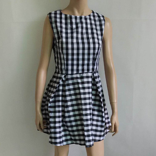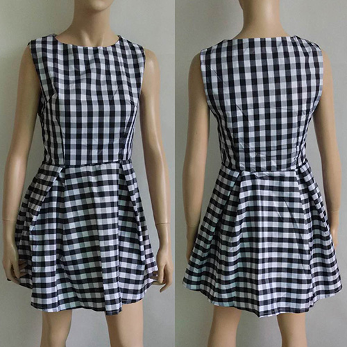 all over plaid printed, a round neck and a high waist. Just slip it on with a pair of