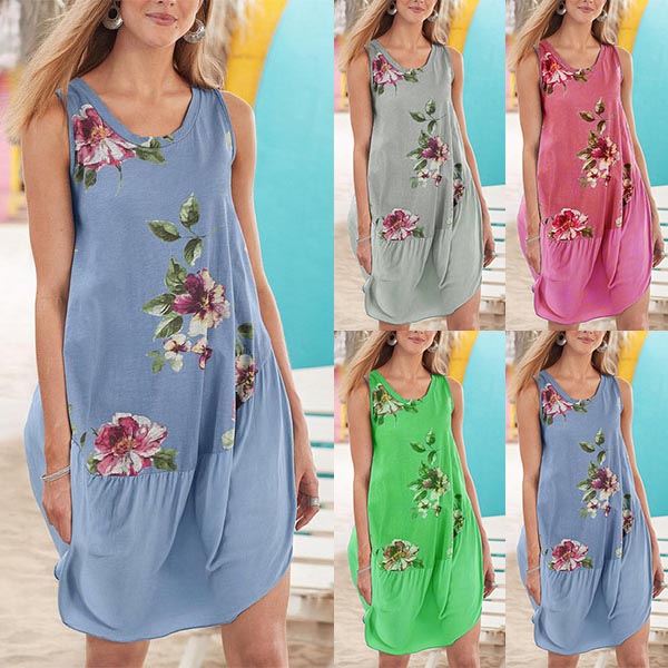 If you are ever in doubt as to what to wear on these summer days,you can always rely on this printed dress. Slip into this wonderful piece and enjoy effortless style. It is finished with sleeveless,round neck and a loose silhouette,this dress can offer you a cool and comfortable day with its soft and breathable fabric.