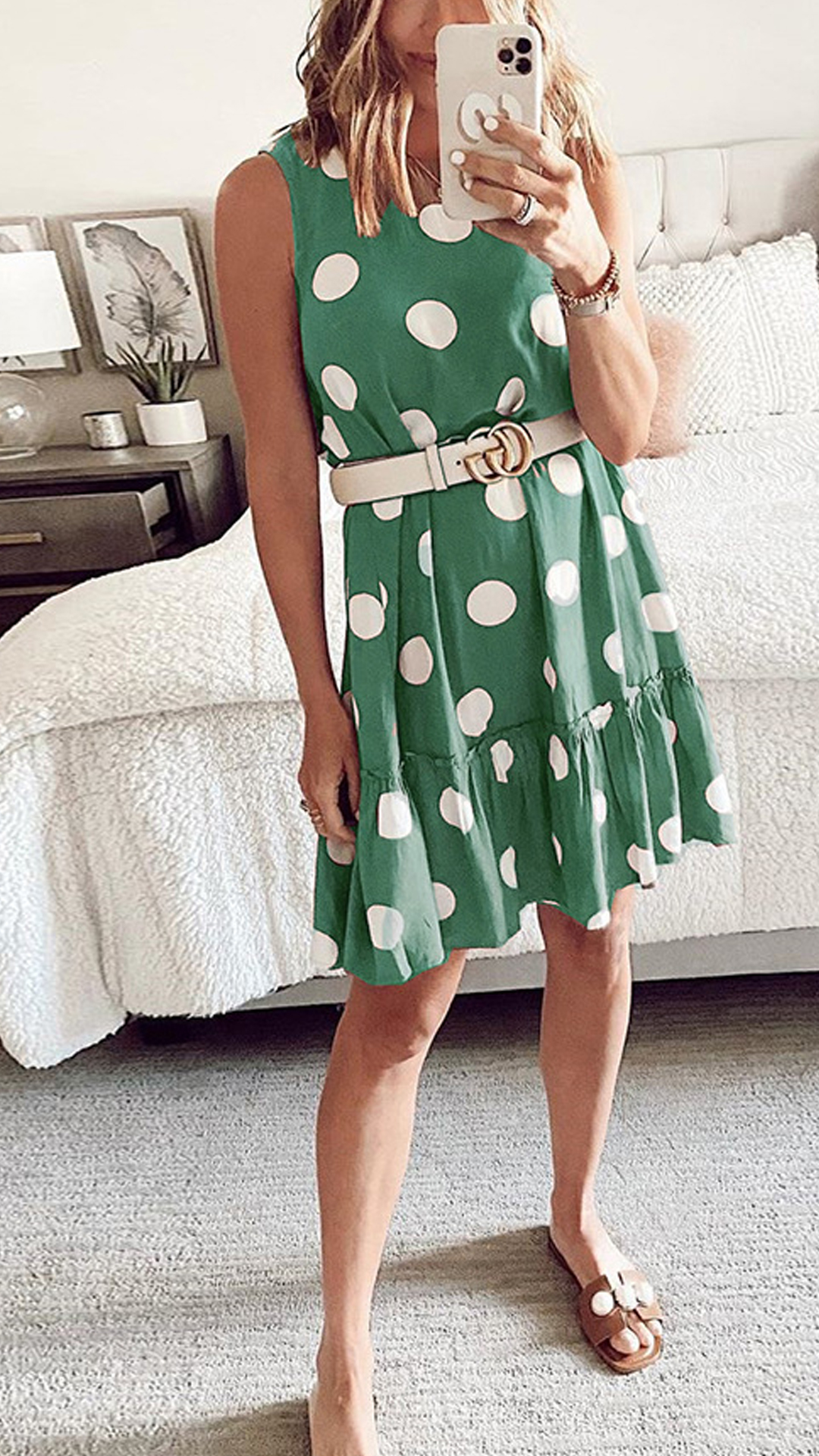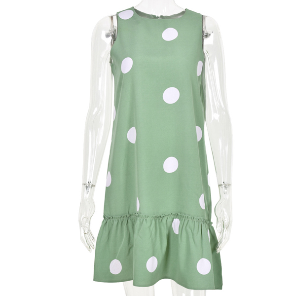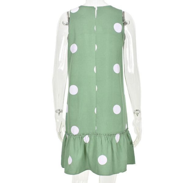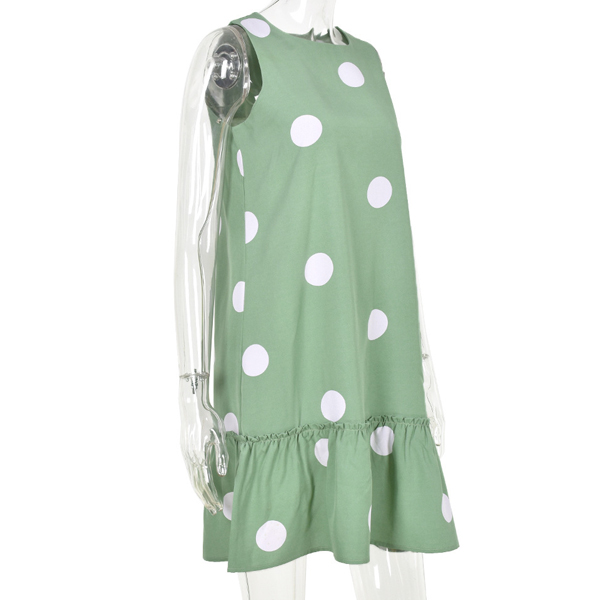 Casual Style Sleeveless Round Neck Ruffle Hem Dots Printed Loose Dress