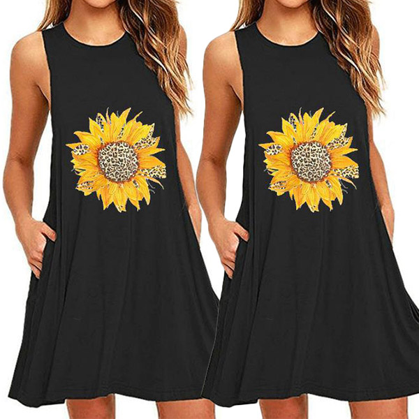 On your lazy days,you can trust in this sleeveless dress to keep you comfortable while it maintains your style. Its soft,breathable fabric and loose silhouette design can promise an utmost comfort,while the sunflower printed pattern design can add some charm. Your perfect choice in these summer days.