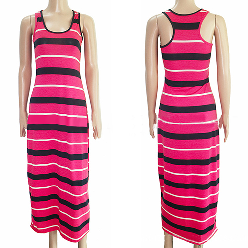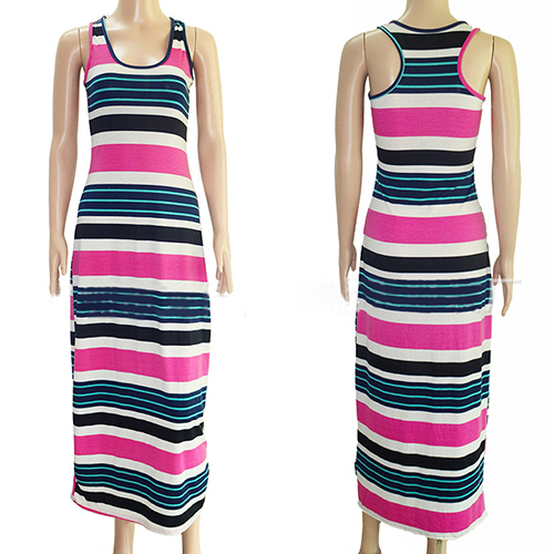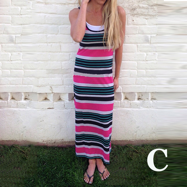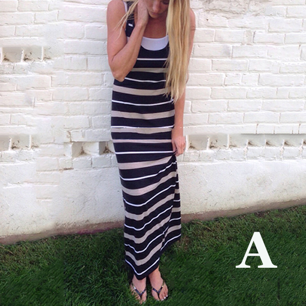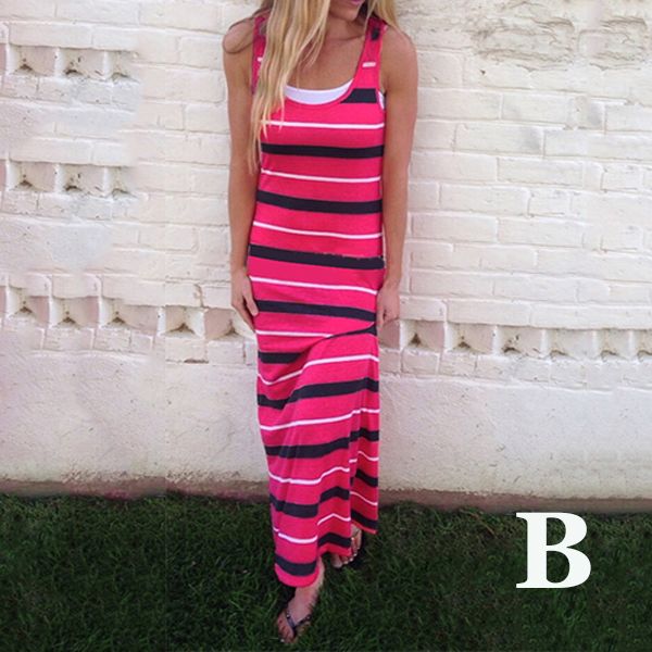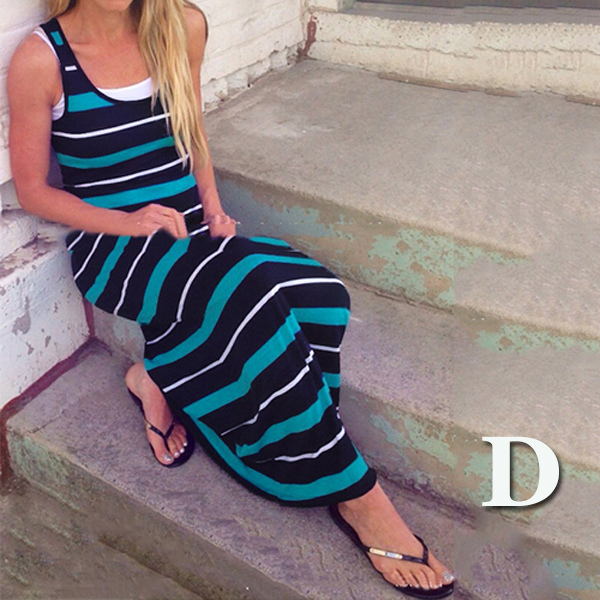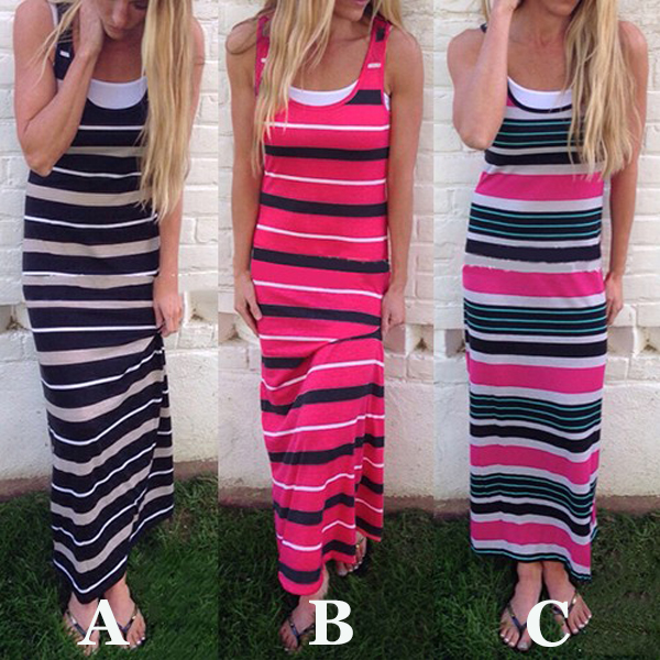 Maxi dresses will be good choices for ladies if they want to be special on beach. Since normally most ladies may wear on swimsuits, you should choose this piece of striped maxi dress so that you can be different from others. With its' design of sleeveless and scoop neckline, you won't feel so hot even in summer days.